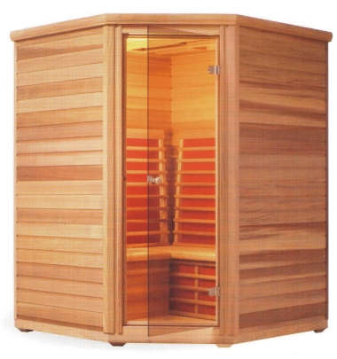 Eck-Infrarotkabine für 3 bis 4 Personen Geräumige Zedernholzkabine mit Sicherheits-Ganzglastür, bronze. Innen und Sichtseiten außen in Zeder, Innenliegende elektronische Steuerung. Leistung 1.950 W Maße: 145 x 145 x 193 cm Inklusive Farblichtschieber mit den Farben rot, gelb, grün, blau und klar! Preisniveau: 4.250,- bis 4.750,- € |